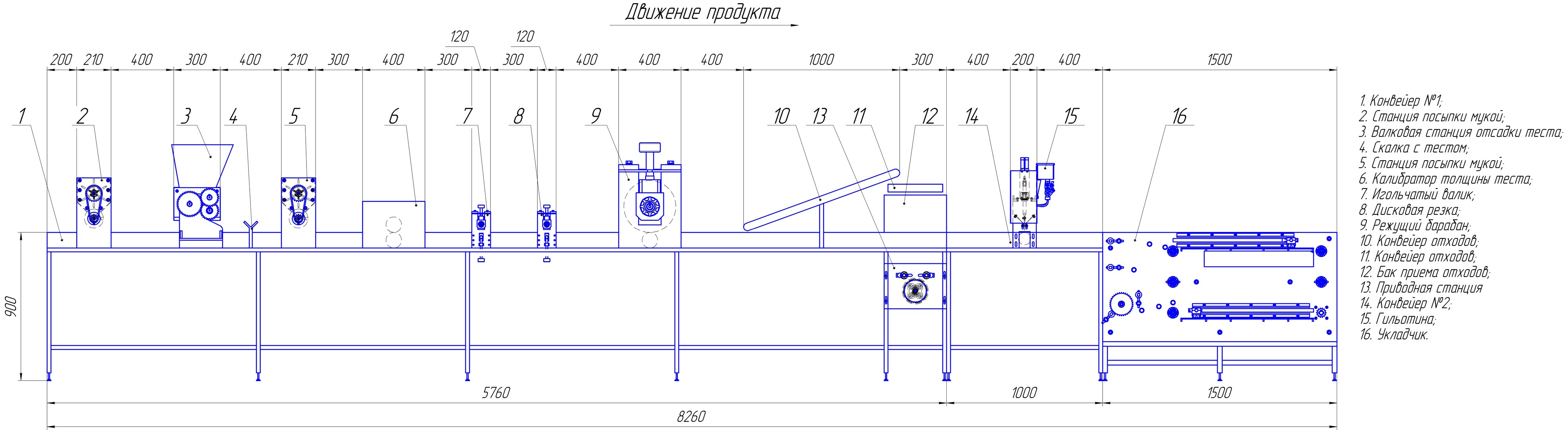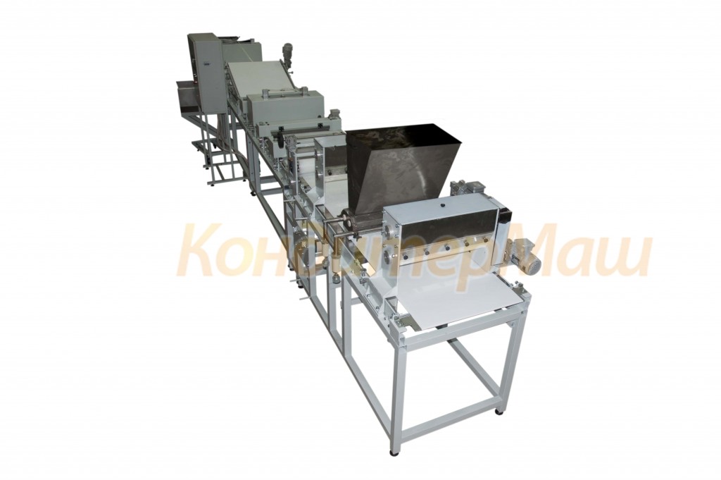 Линия предназначена для формования, калибровки и укладки изделий на противень кондитерский или на стальной под печи.