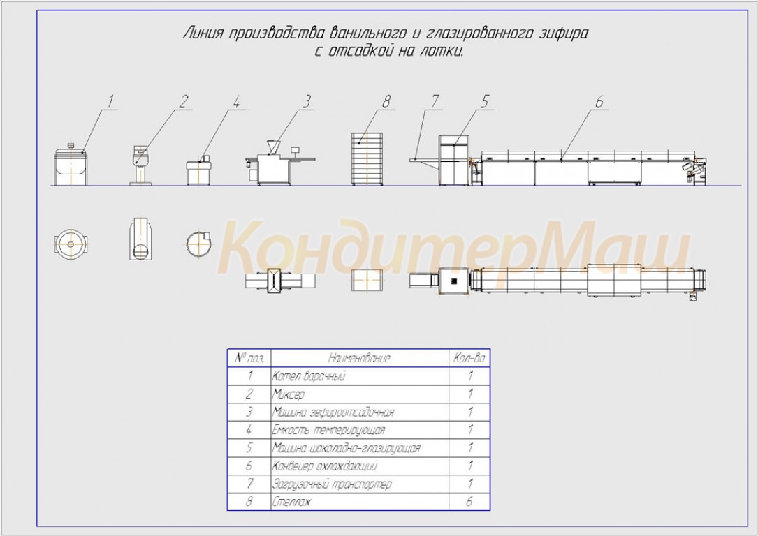 Предлагаемая линия по производству глазированного зефира состоит из следующих основных узлов: