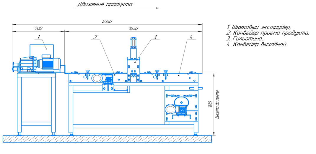 Предназначено для формования вязких масс с функцией поперечного деления жгутов на сегменты заданной длины.
